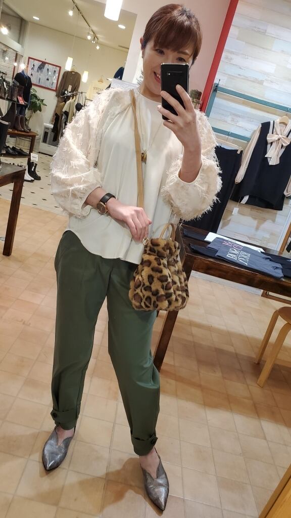 スカートや綺麗めパンツでフェミニンに、カジュアルパンツで外して、など幅広いスタイリングに存在感をプラスしてくるおすすめのブラウスです!