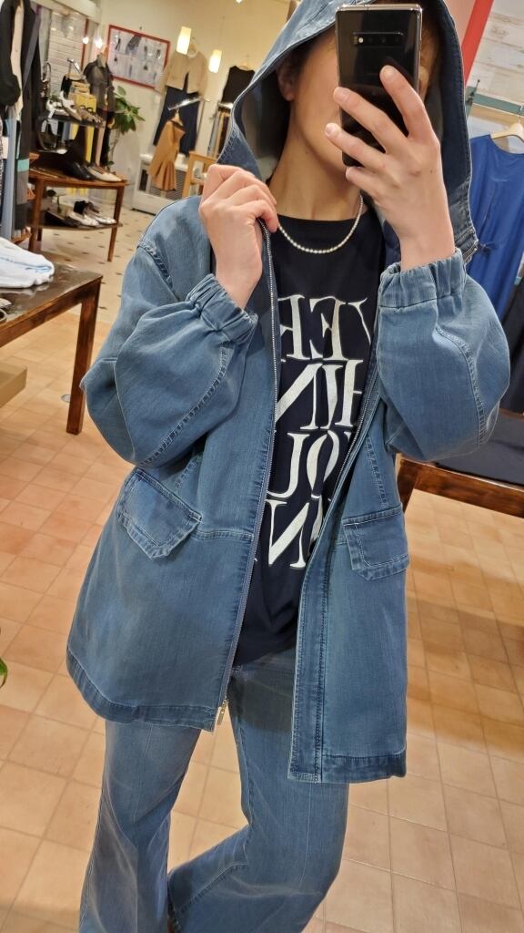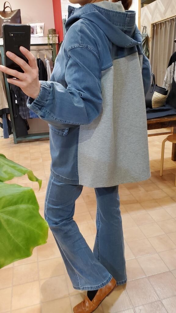 <BLUE FRONCE>後ろボンディング フーディデニムブルゾン