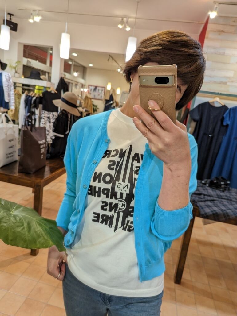 編地は細番手ハイゲージの長袖タイプ。春から夏場の冷房対策になどこの一枚があれば重宝してくれそうです。