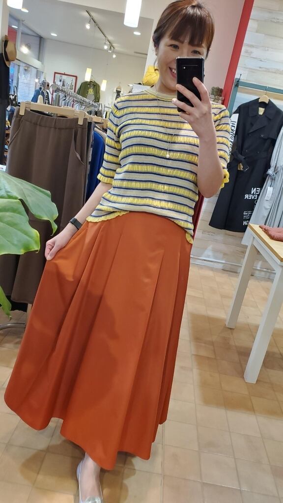 明るく柔らかな[イエロー]、ブラックがきりりと効いた[ベージュ]のお色で、1枚で、羽織やジャンスカ、サロペットなどのインナー使いにもおすすめです♪