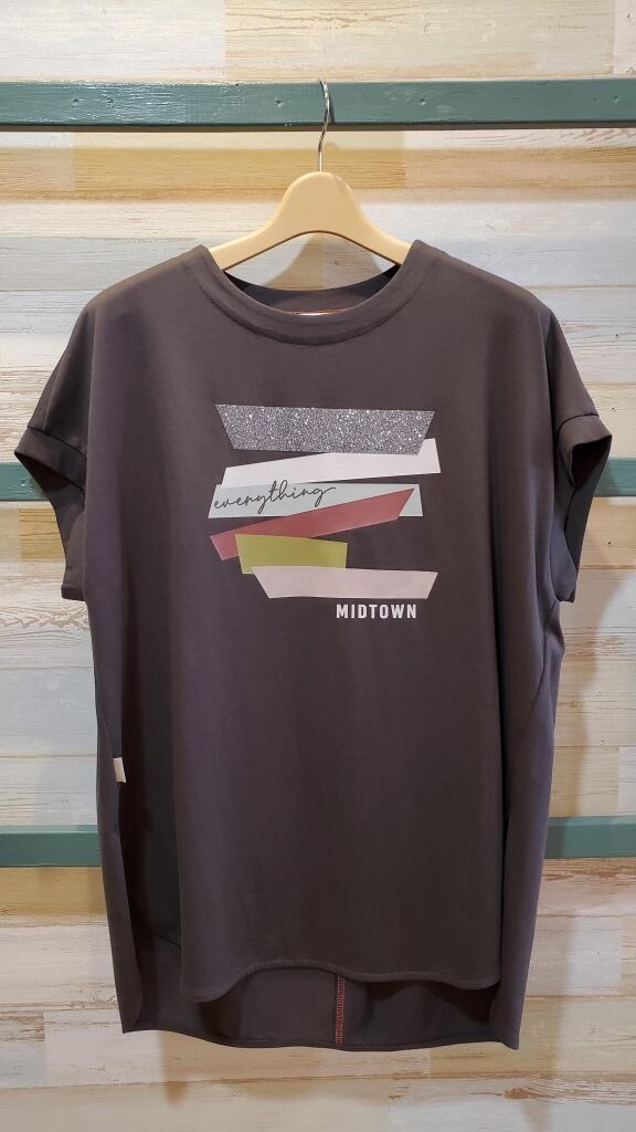 <ayane>ラメプリントTシャツは、華やかさとカジュアルさを兼ね備えたアイテムです。