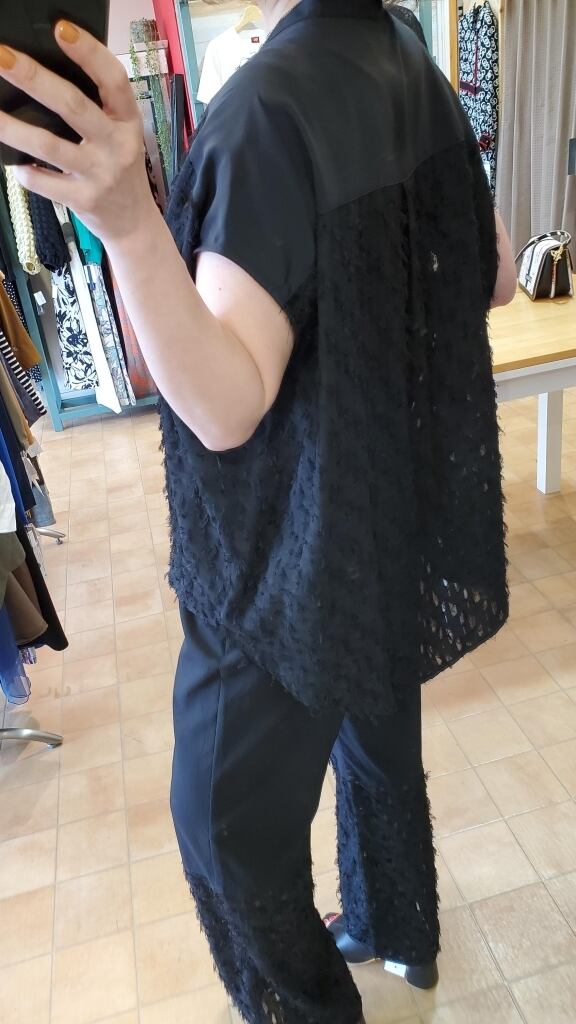 カットジャガード素材を使用し、夏に快適♪サラリとドライタッチに仕上げました。ボディラインをカバーするシルエットなので、ゆったりとした一枚着にもオススメです。