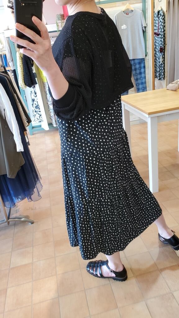 シアーな長袖タイプですので、中にはノースリーブから長袖まで着回しのレイヤードで長い季節でお楽しみいただけます。