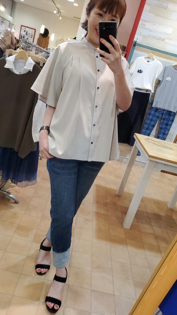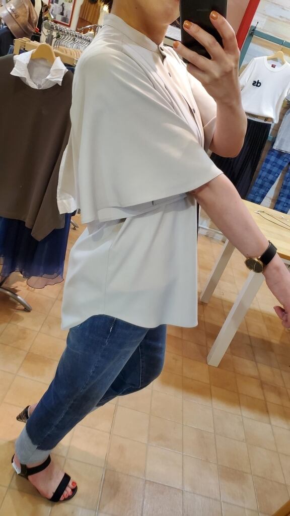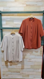 二の腕や体型もカバーしてくれるので、一枚着のブラウスとしても安心♪