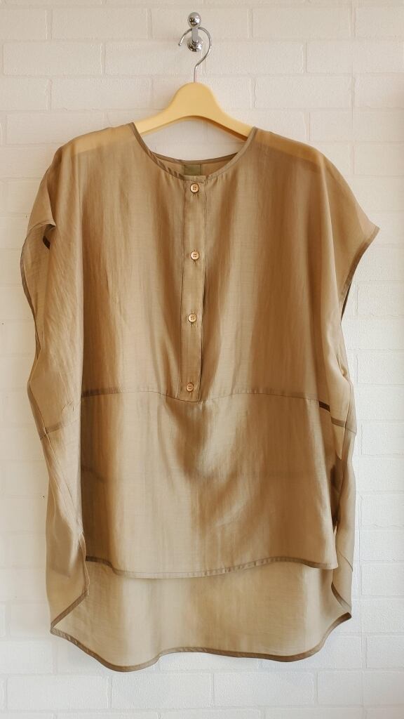 モード感と女性らしさのあるほのかな光沢のシアー素材で作られたこの一枚は、薄手で軽量なので、これからの季節にぴったり。