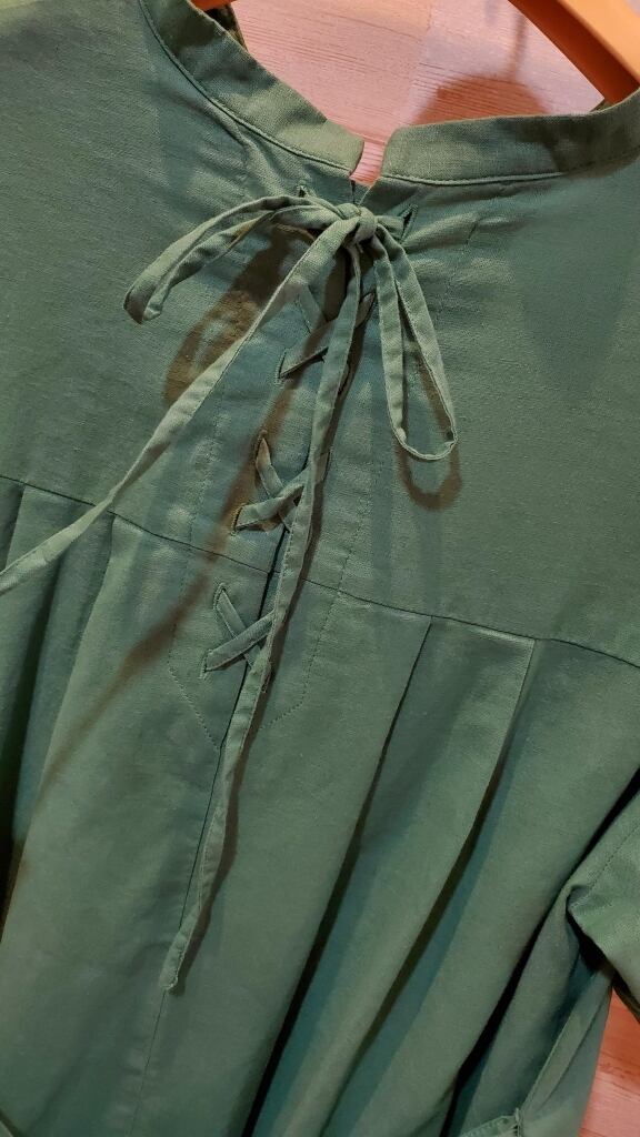 フレアシルエットとVネックがすっきりとした女性らしさを引き立て、背中にはレースアップが施され、後ろ姿もおしゃれなデザインです☆