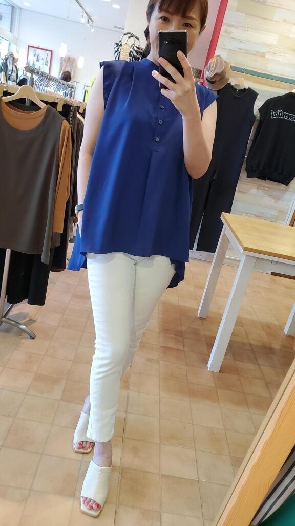 <トロア>最新作☆品の良いロイヤルブルーカラーの涼やかノースリーブブラウスです☆