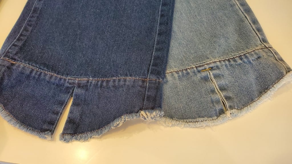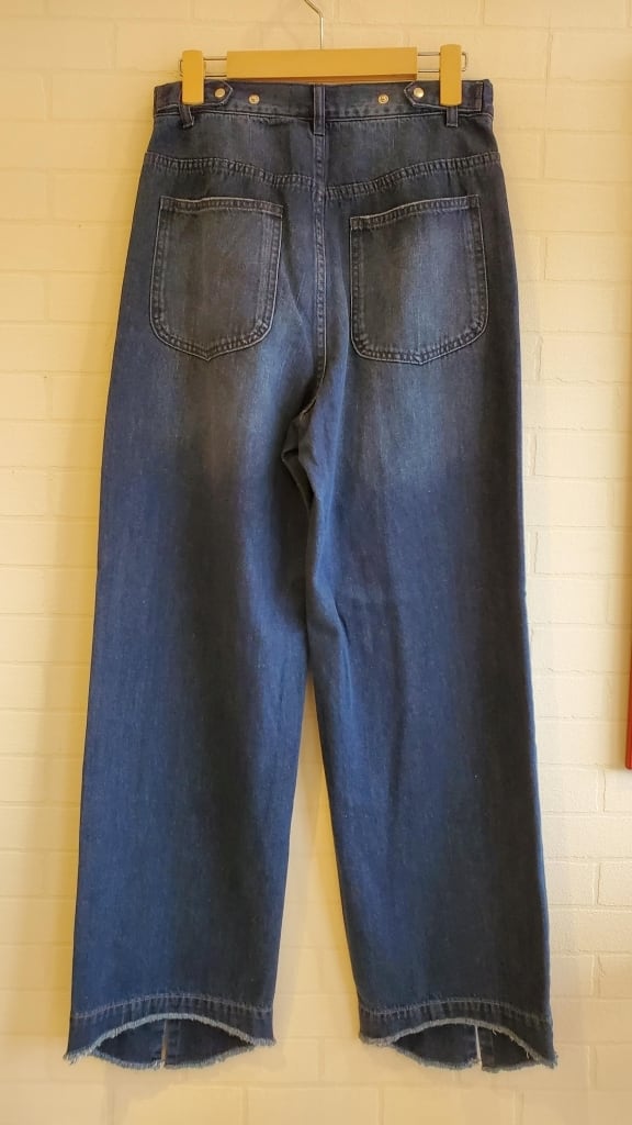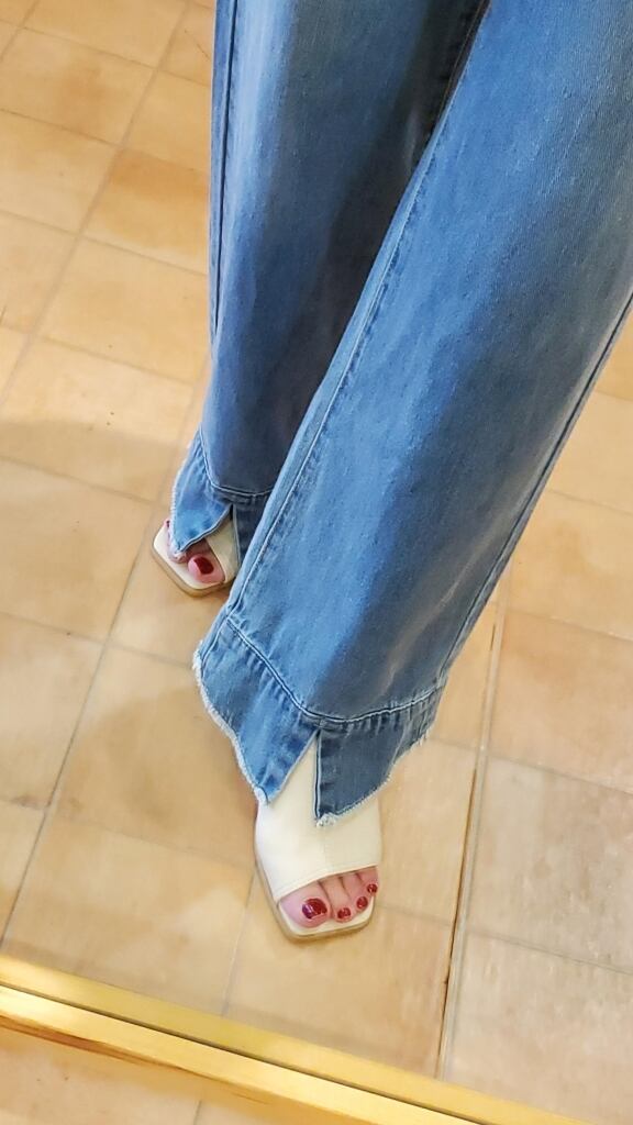 大人っぽいスタイリングが叶う、CYAN TOKYOのスリットヘムワイドデニム。前に向かって流れるヘムラインが脚長効果をもたらし、さらにオシャレ感もアップさせてくれるデザインデニムなんです★