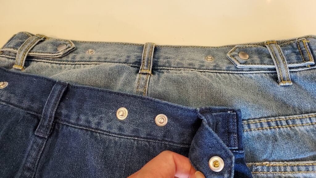 ゴムの入らない股上深めのウエスト仕様。後ろにボタンが付いていますので、お好みのフィット感でサイズ調整が可能です☆