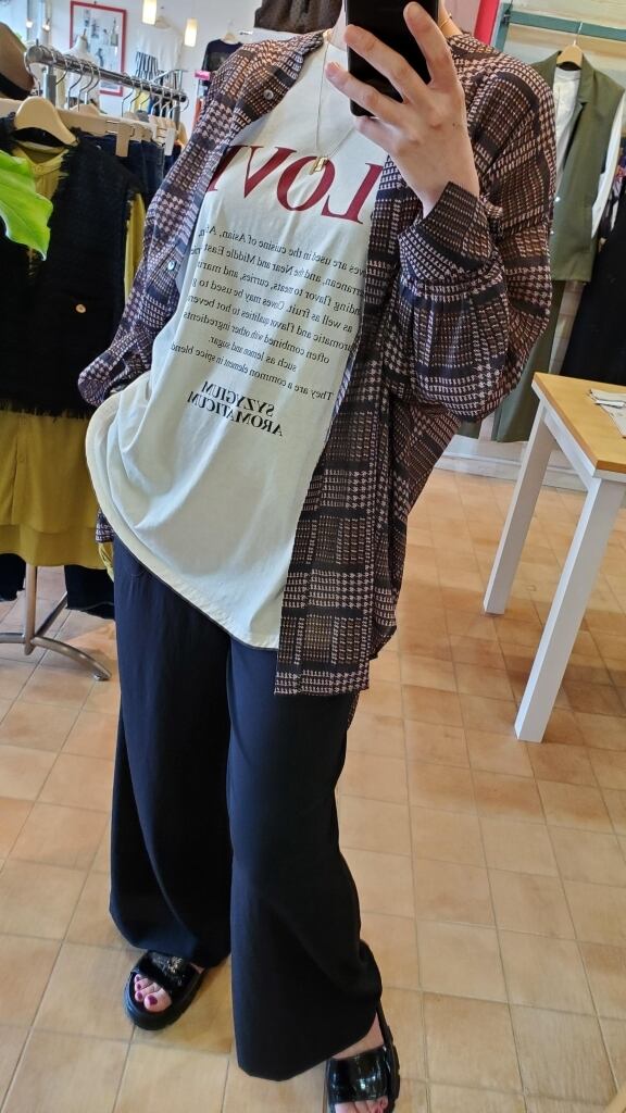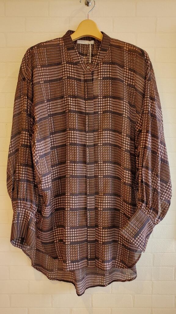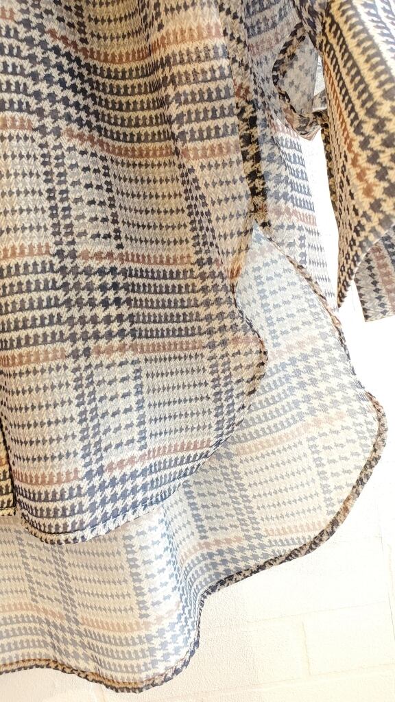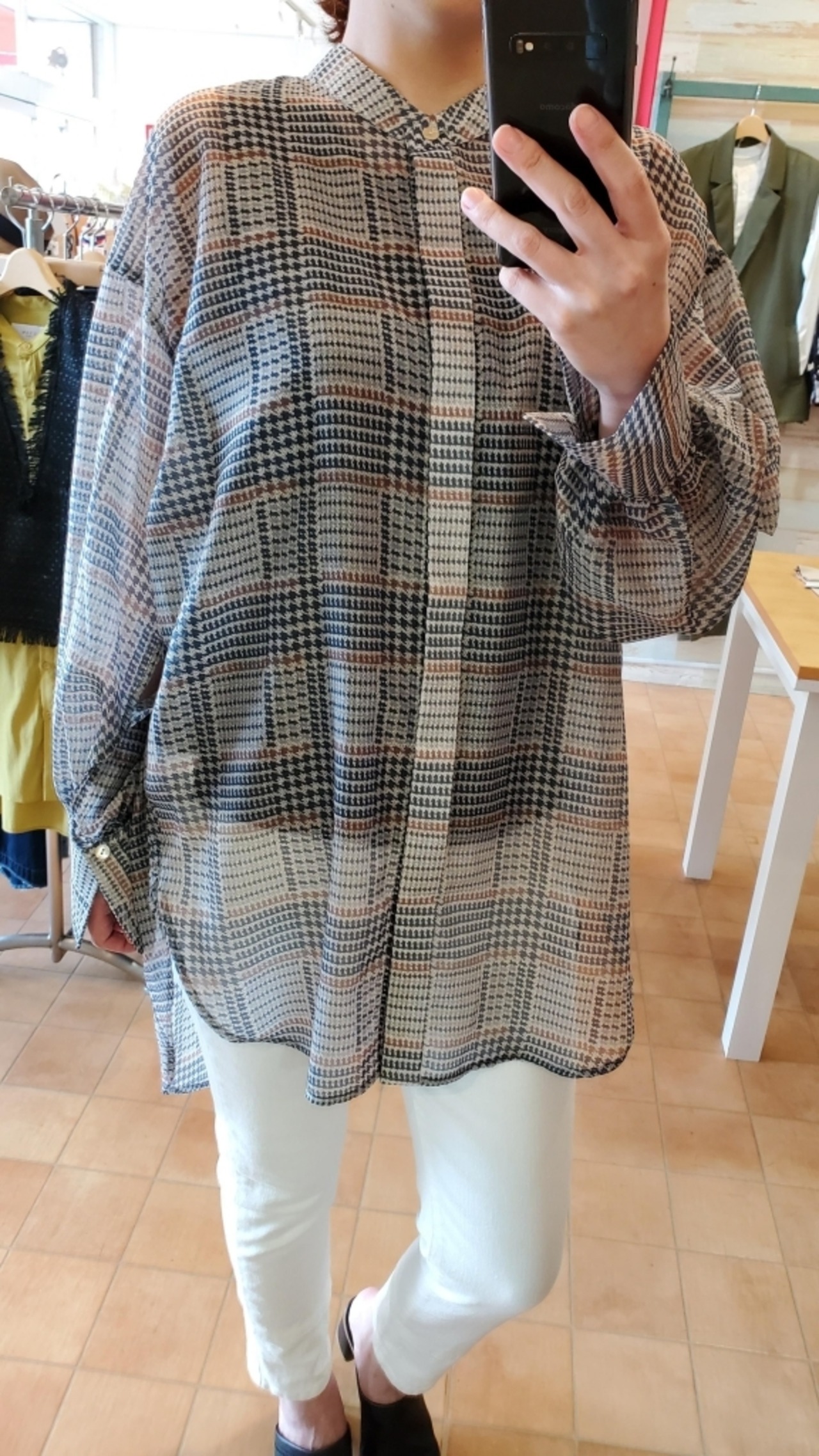 秋らしいチェック柄プリントを施したシアーオーバーシャツ☆