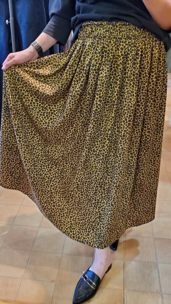 レオパード柄のようで実はフラワープリント!とってもお洒落なプリント柄のロングスカートです。