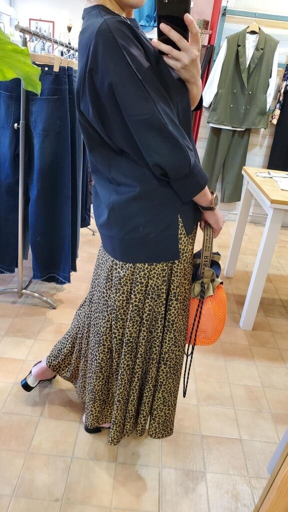 たっぷりとギャザーをとり、たらんと落ち感のあるジョーゼット素材で膨らまないシルエットは、どんなトップスとも相性抜群です◎
