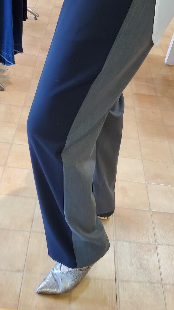 前面ネイビー無地・後ろ面グレーピンストライプ柄