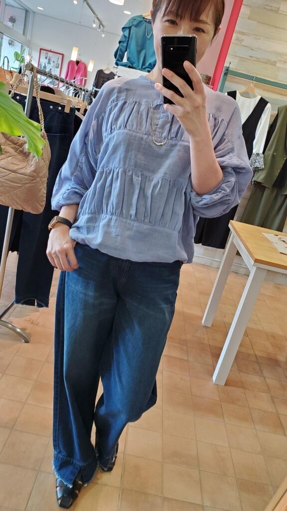 二段のくしゅくしゅギャザーがポイントのプルオーバーブラウスです☆