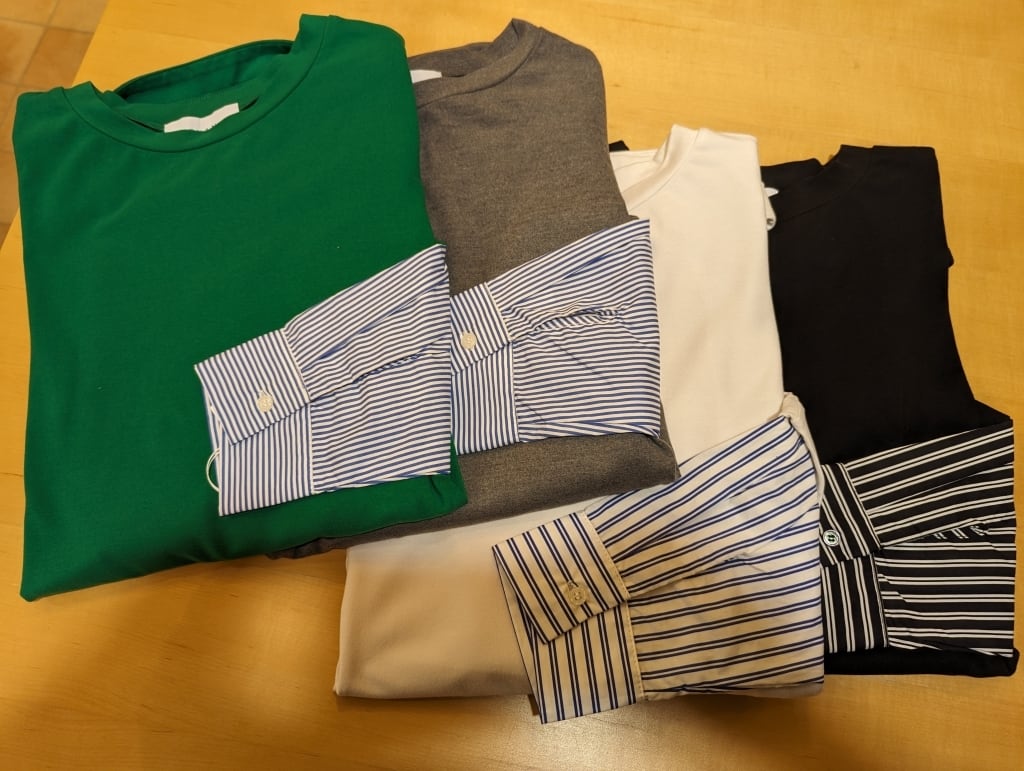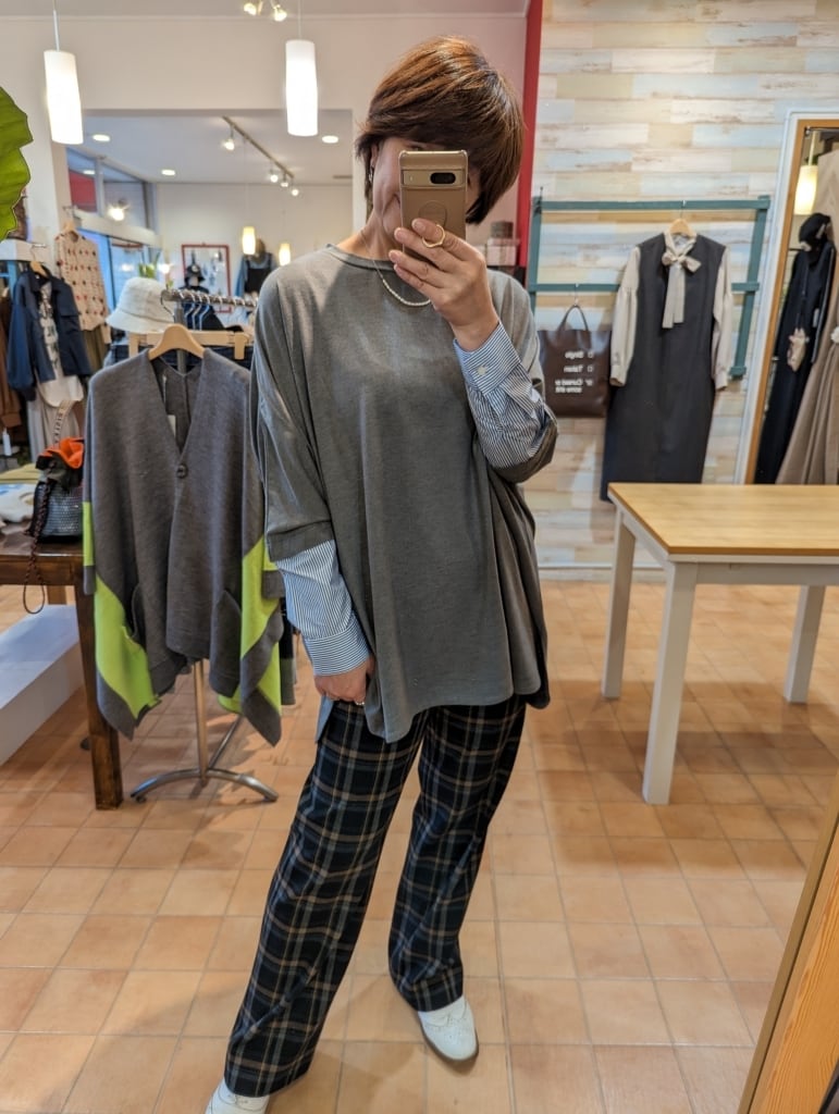 一枚で、またジレやカーディガンなどお袖を活かしながらの重ね着にもおススメです◎