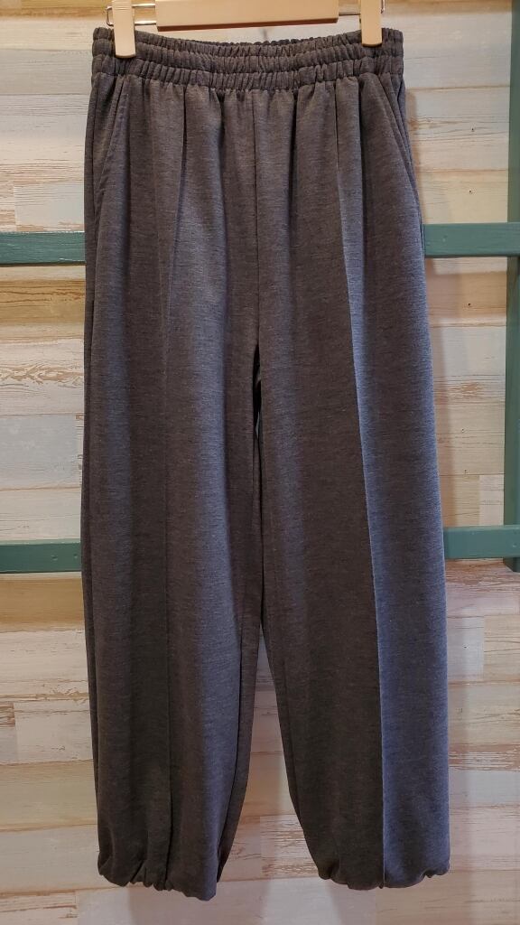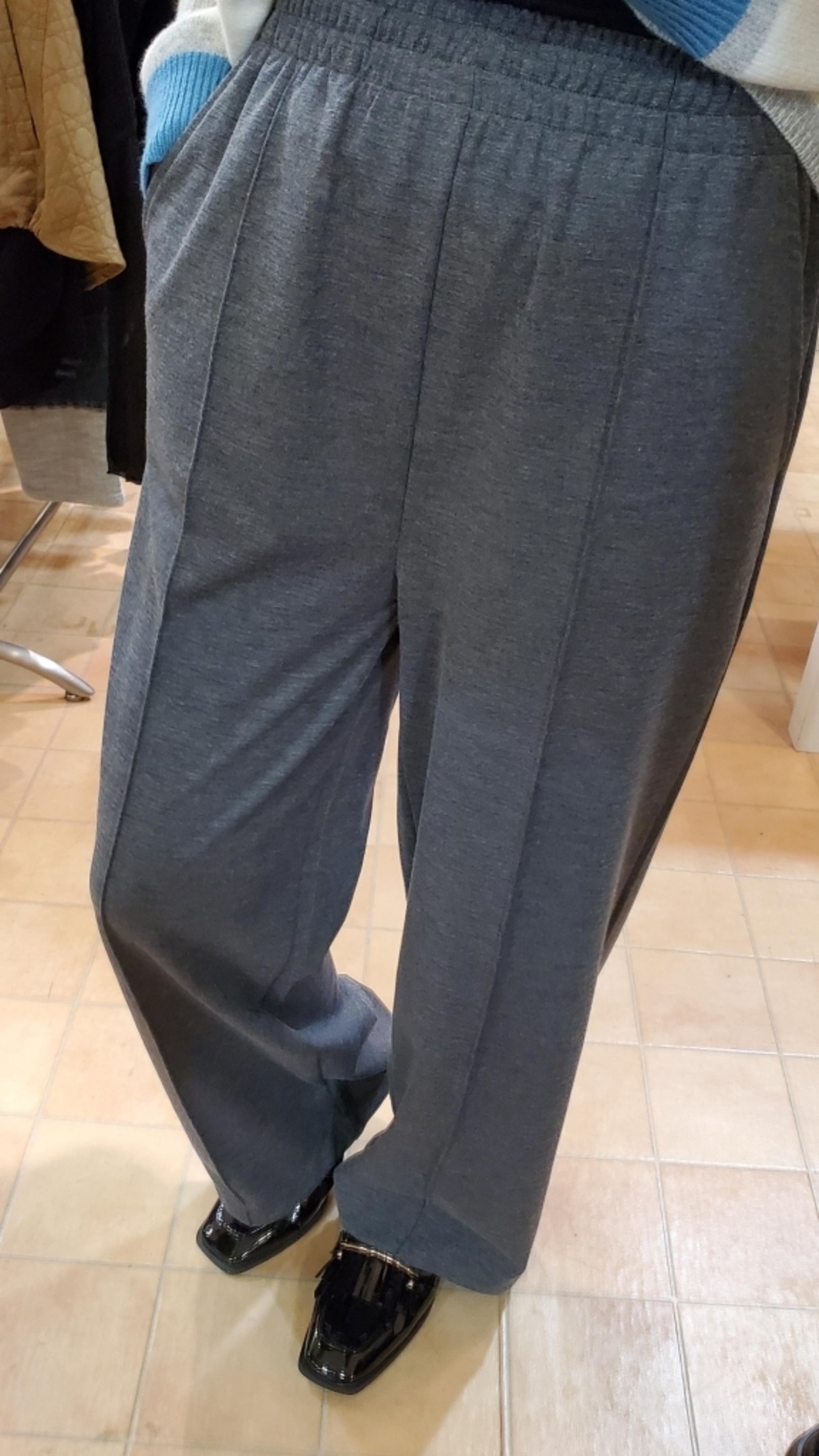 柔らかな落ち感のあるポンチ素材で、ジャージーな穿き心地とウエスト総ゴム仕様のノンストレスパンツです。