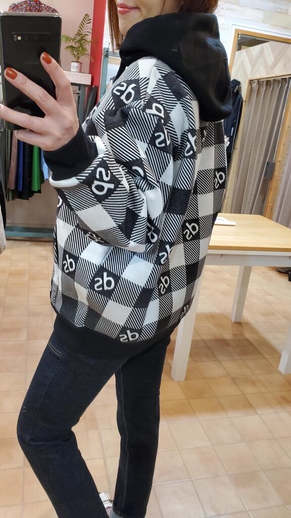 <ダブスタ> 先染めチェック柄ダンボールジャガードフーディ