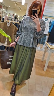 バックの異素材切り替えで、かっちりと見えがちなツイードライク素材をお洒落な気軽な一枚着にチェンジしてくれます♪