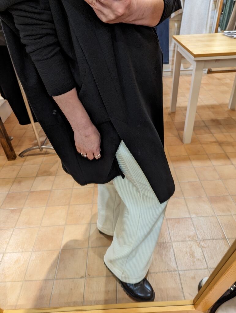 コーデュロイのような素材ですが伸びのあるカットソー生地ですので重苦しくなく、着やすさも魅力のひとつです。
