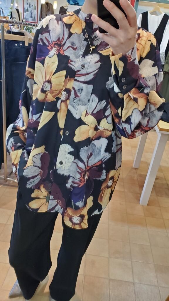 大胆でハイセンスなぼかしフラワープリント柄のシャツです。