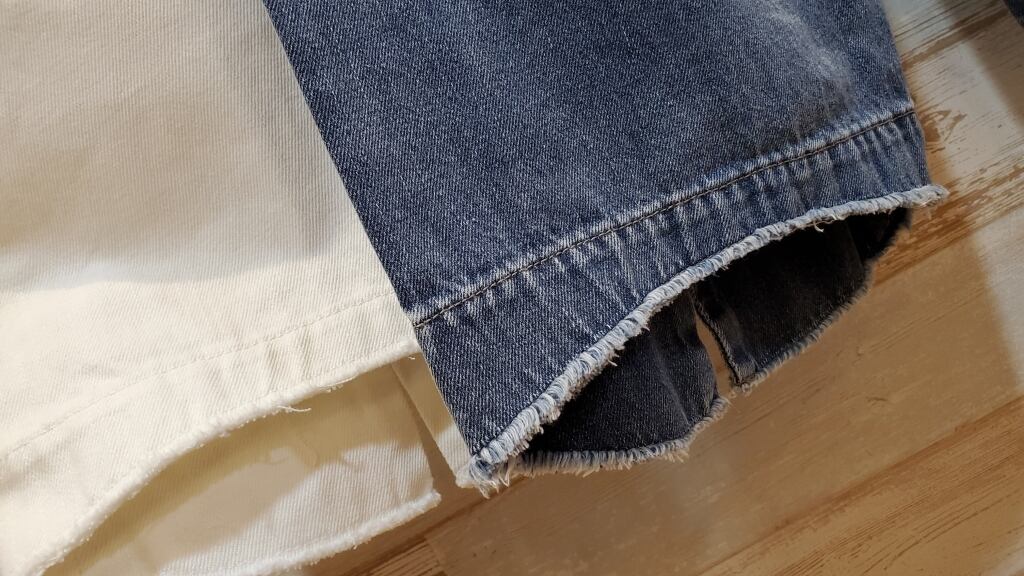素材は綿100%。【ホワイト】は張りがあり透けが気にならず【ブルー】は洗いがかかって柔らかな風合いになっています。