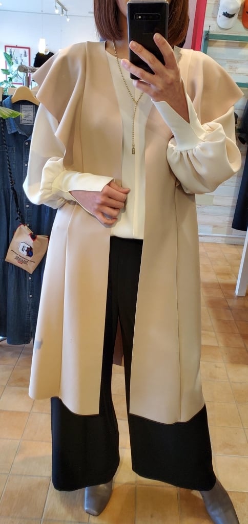 綺麗めな表面ですから、日常のカジュアルスタイルの体型カバーだけでなく、ちょっとした華やかなお出掛けやオケージョンなど幅広く重宝してくれます。