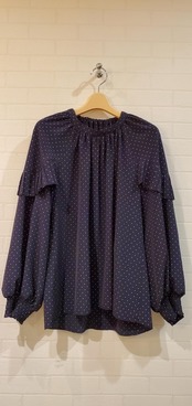 <BLUE FRONCE> ドット柄肩タックフリルブラウス