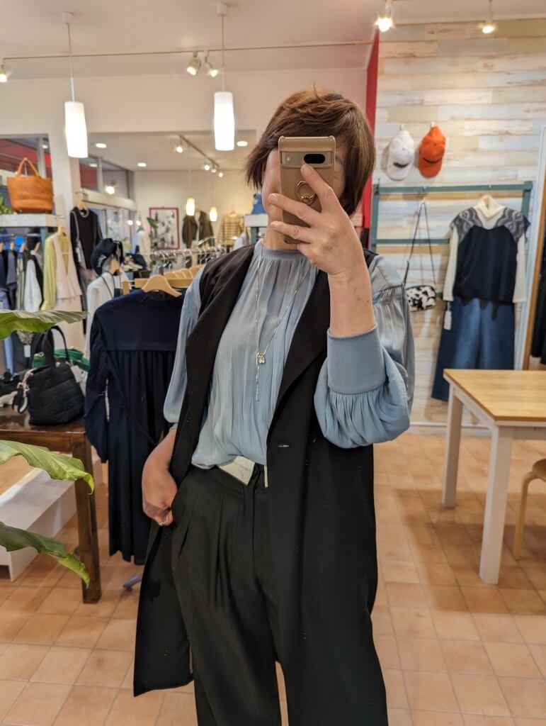折り返しのマーベルトでカッコいいウエストラインの、魅せるワイドパンツです☆