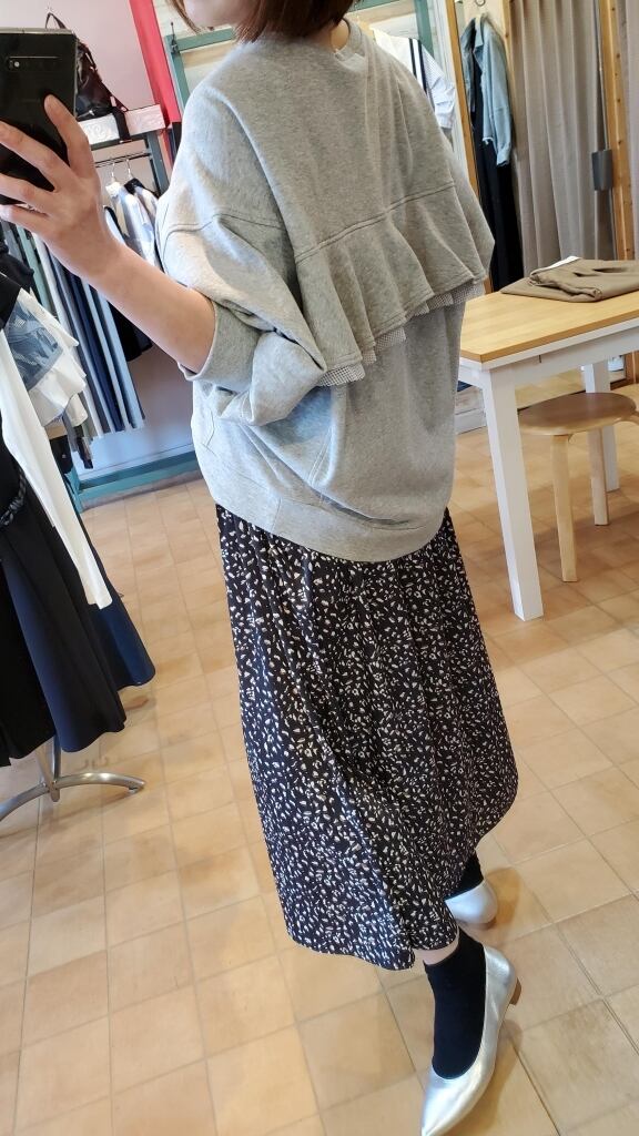甘さを抑えた裏毛素材のバックフリルで、<トロア>の大人可愛さを気軽にお楽しみくださいませ^^