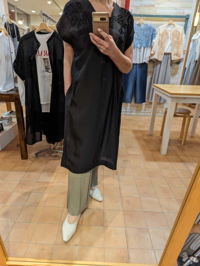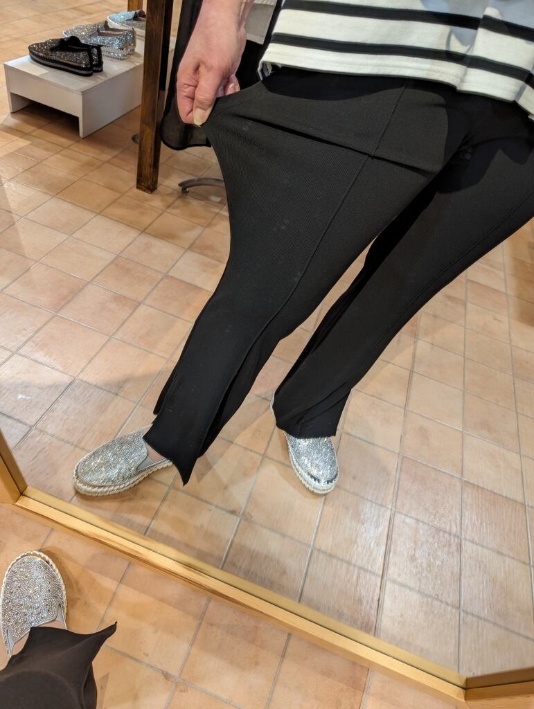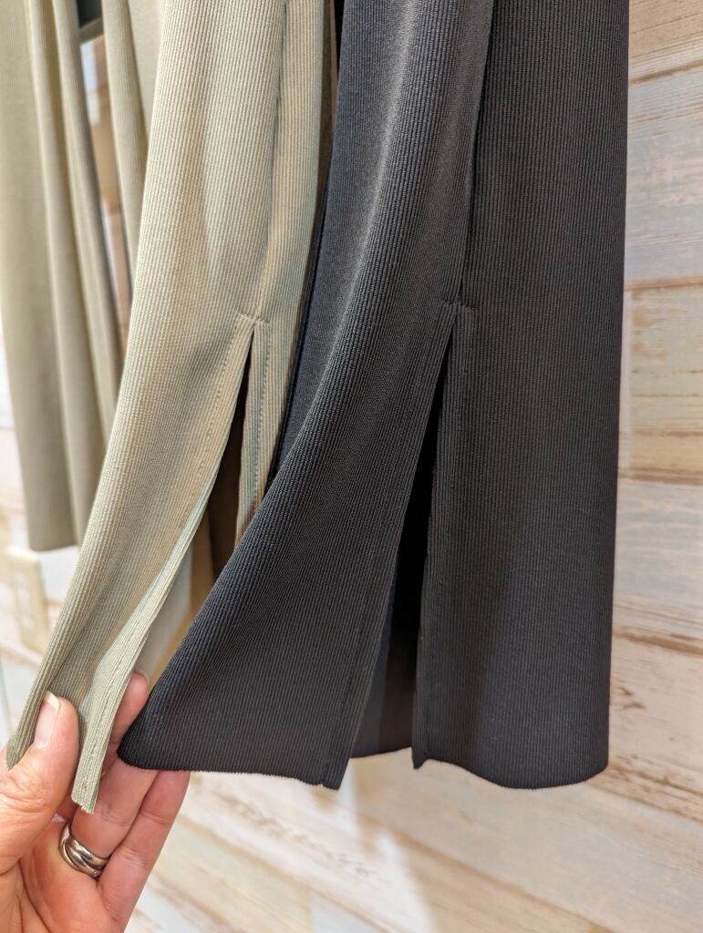 イージーなリブカットソー生地を使用しながら、フロントにはセンターラインのピンタックを入れ脚長効果と綺麗め見えが実現しました☆