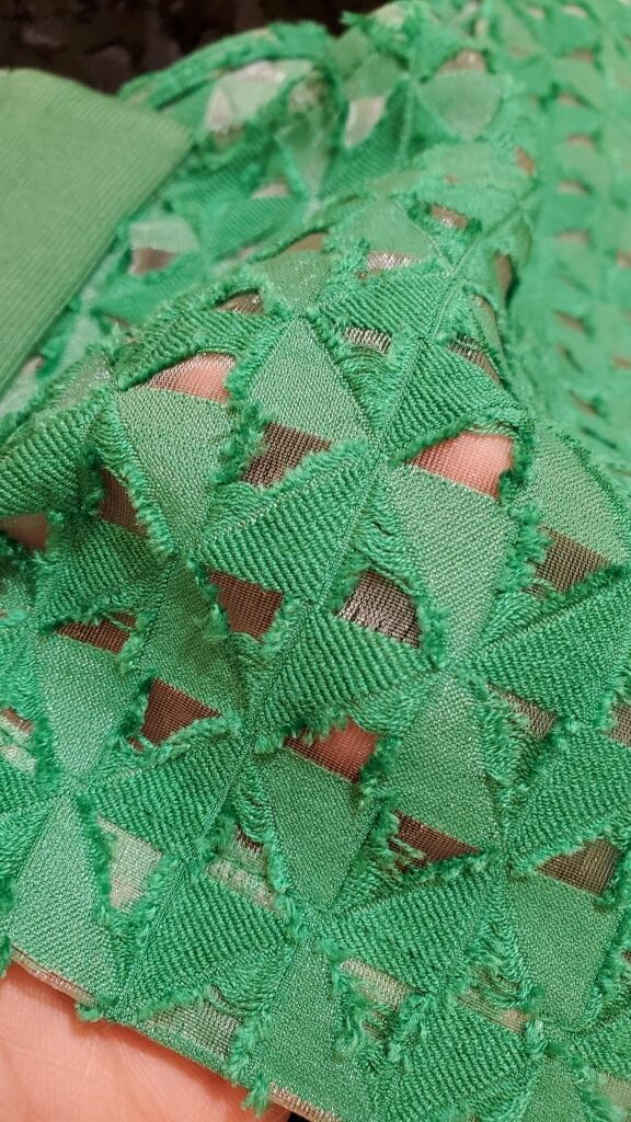レースとも異なった光沢のシアーで、表情豊かな質感が目を惹きます。