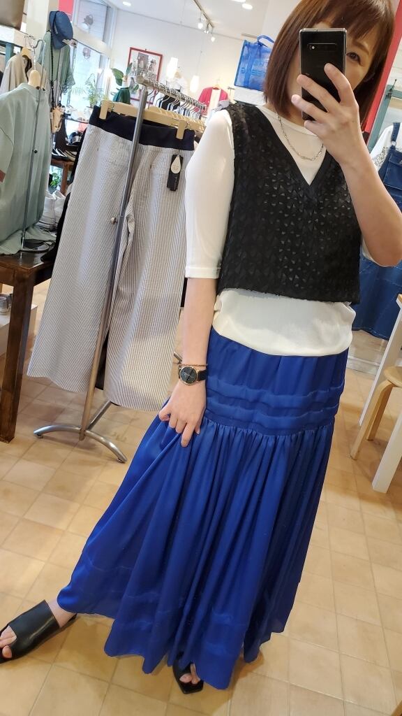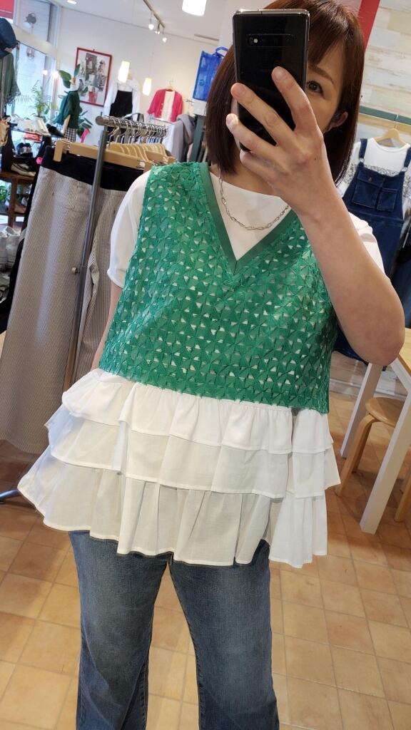 40㎝と短い着丈ですがインナーのレイヤードは幅広いデザインと相性GOOD☆トップの視線を上げてくれますので、スタイルアップ効果の期待できるベストになります。