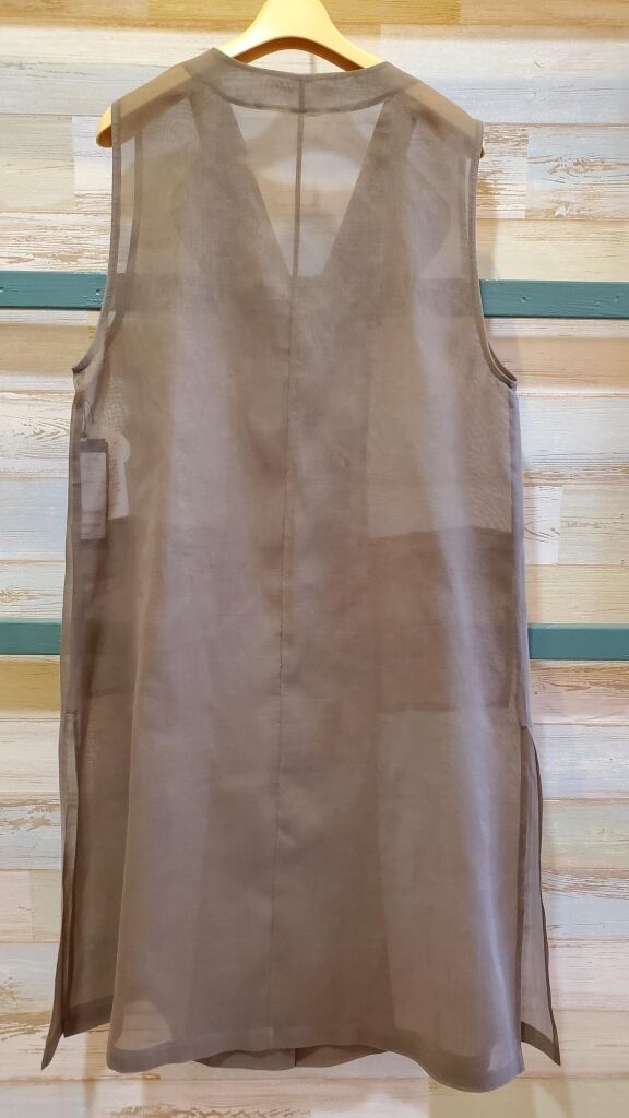 張りのある透け素材が上品さを演出し、夏の暑さでも涼し気で快適に過ごせます。ラフなカジュアルスタイルからオフィスコーデまで、幅広いシーンで活躍する一枚です。