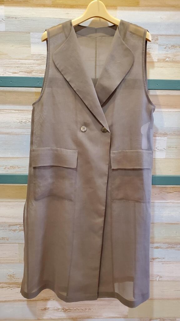 シアー素材が清涼感を漂わせる、<BLUE FRONCE>のシアーダブルボタンジレが登場しました。