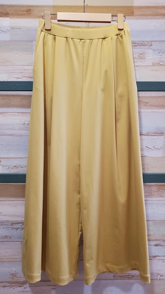 総ゴムのウエストと、もっちりストレッチの素材感で穿き心地はとても楽々♪艶感のある表面と落ち感でイージーながら上品に取り入れられますので、普段のワイドパンツコーデに是非おススメです。