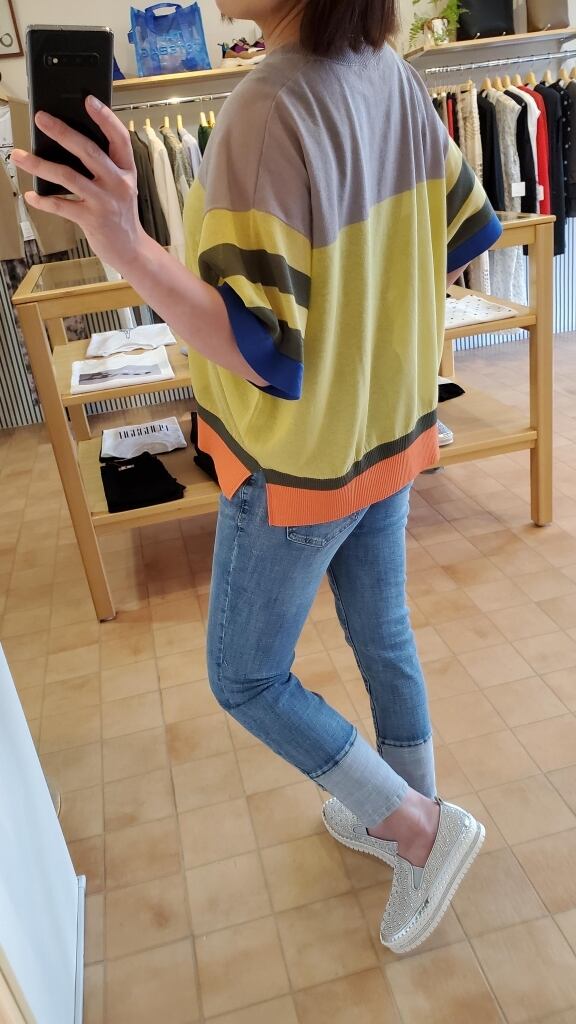 カラフルなお色配色で気分が上がる♪<アヤン>のサマーニットです。
