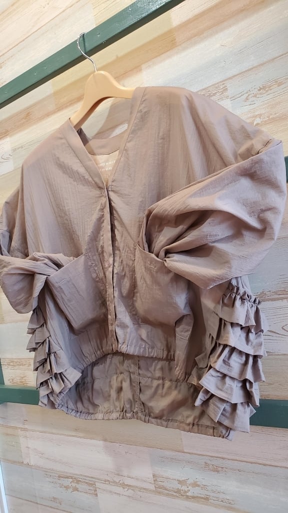 ふっくらなお袖やすっきりVネックも短丈なお作りにバランスよく、夏のTシャツスタイル、ワンピースなどの羽織などにも是非おすすめです!