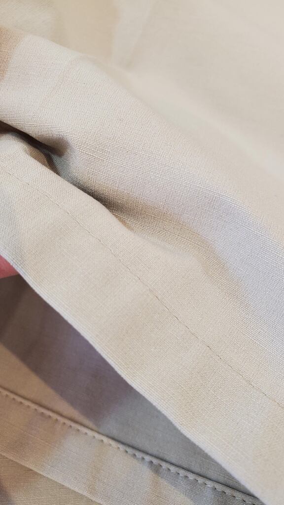 生地は、綿、麻などをMIXさせた品の良い表面のさらさらクール素材。ポリエステルも入っていますので扱いやすく、また生地は斜めストレッチが利きますので穿きやすさも兼ね備えています。