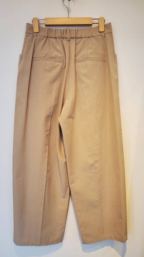 深いタックでゆったりとした立体感を作るコクーン調シルエットのパンツです。