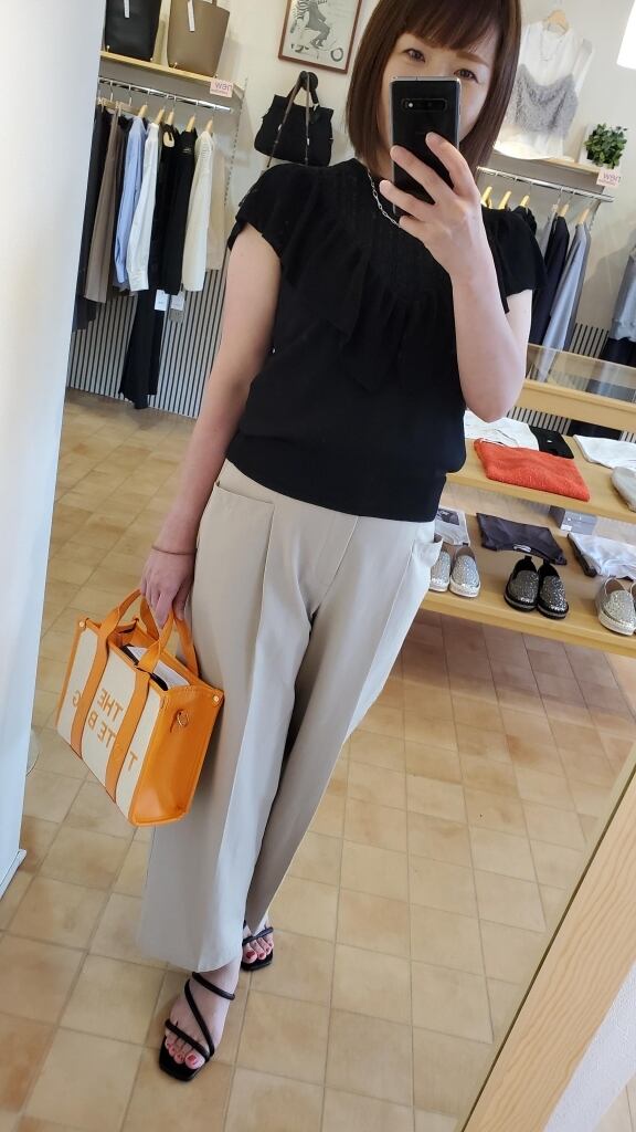 カジュアルな日だけでなく、フェミニンなコーディネートの程よい着崩しボトムとしてもたいへんおススメです♪