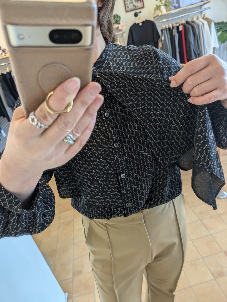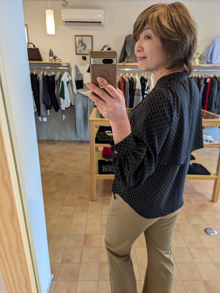 前開きデザインで着脱がしやすく、さらりと落ち感のある生地はお家洗いもできてアイロン不要◎気を遣わずに、ノンストレスにきちんと感をプラスできるブラウスですのでたくさんの場面で重宝してくれること間違いなしです!