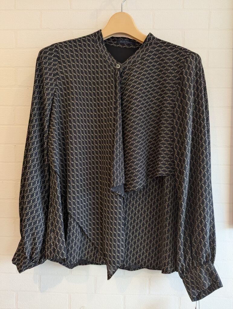 <BLUE FRONCE>フリルタイ柄ブラウス