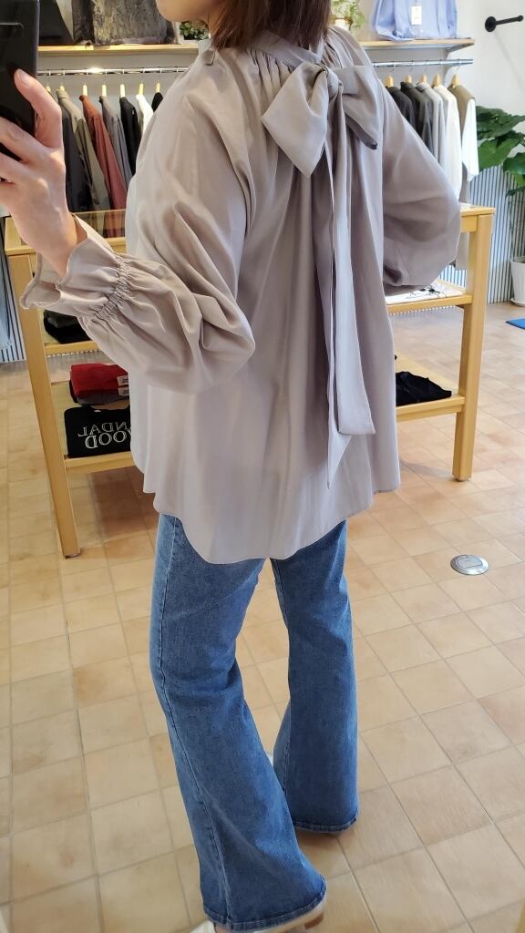 リボンタイでお顔周り華やかに魅せてもよし、ふんわりとしたフェミニンギャザーに後ろリボンで可愛げな印象で着ていただくのもおすすめ◎