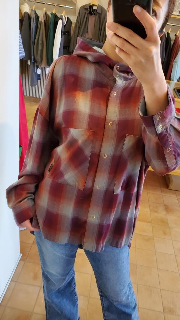 [50%OFF] <ayane> オンブレーチェックフーディシャツ