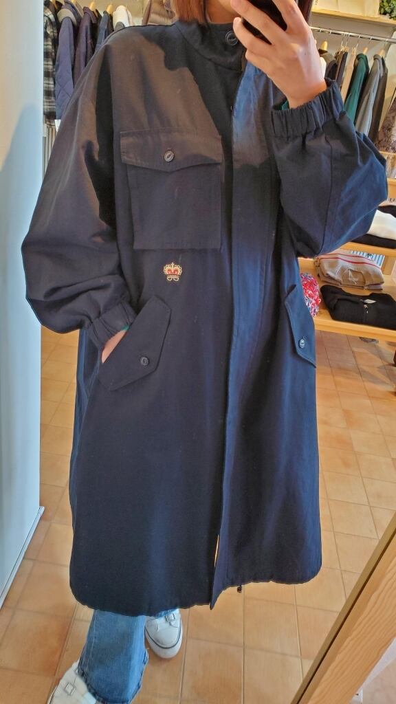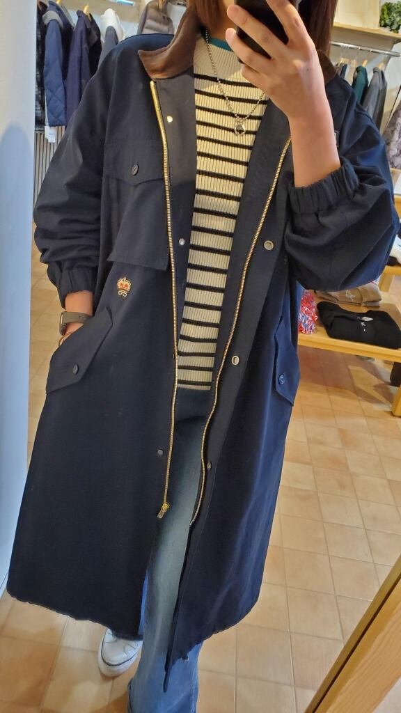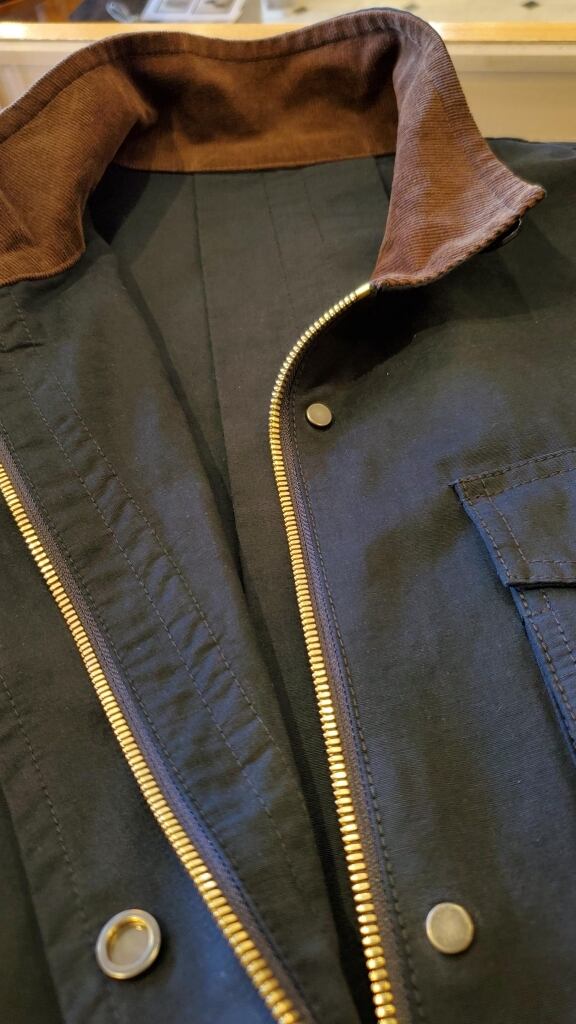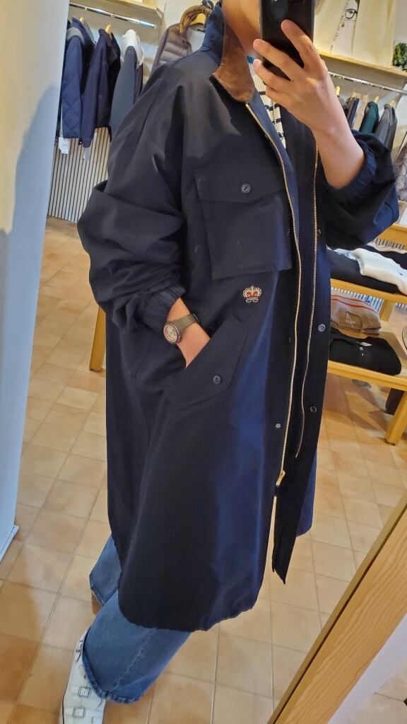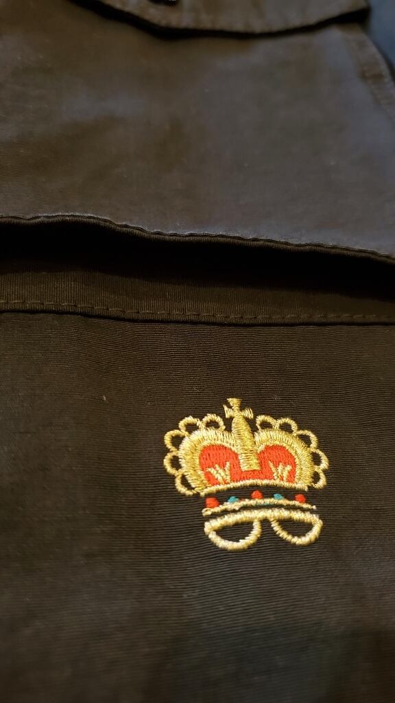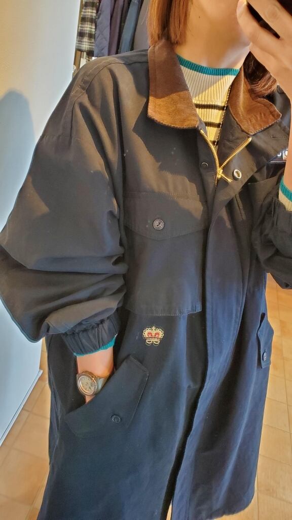 王冠の刺繍やロゴワッペン、衿裏のブラウンカラーのコーデュロイ生地もポイントになります。