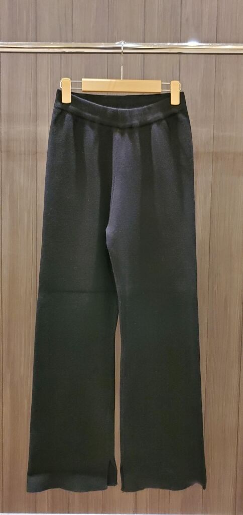 美脚シルエットが自慢のセミフレアニットパンツです。