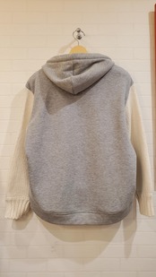 暖かボンバーヒート素材の身頃にお袖ニットの切り替え。お洒落なお紐や刺繍もポイントになり、スポーティさのない大人可愛いフーディに仕上がりました。