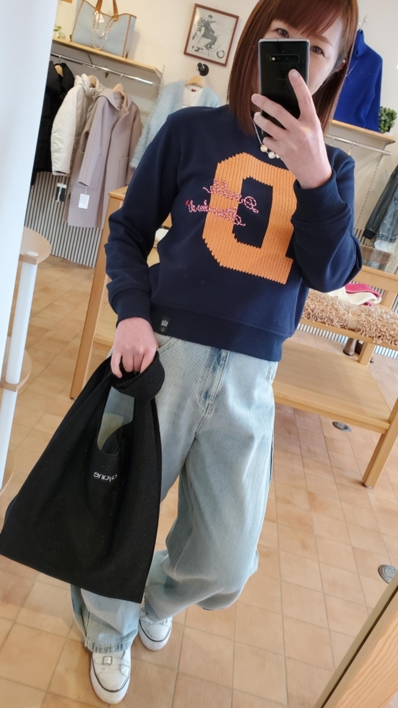 大胆な「D」ロゴ刺繍がコーディネートのポイントになる<ダブスタ>新作プルオーバーです。
