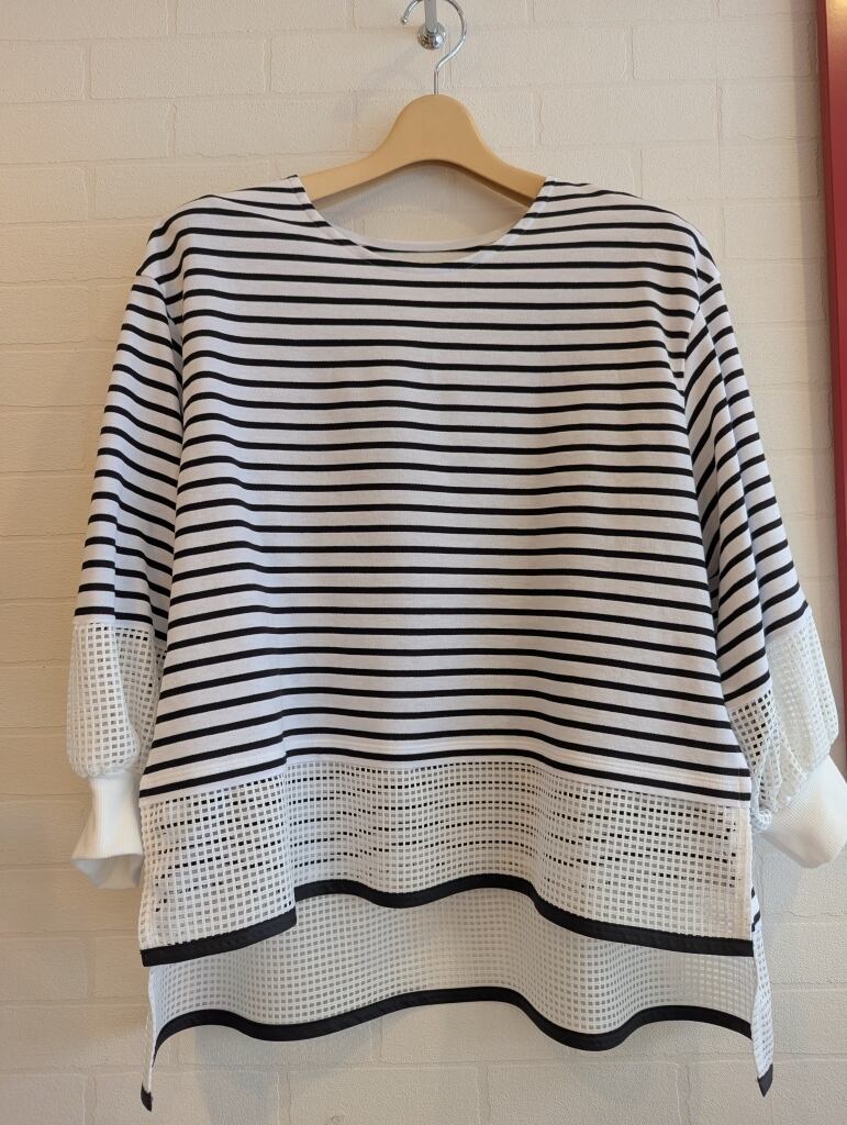 お袖と裾のメッシュ切り替えが爽やかなボーダー柄プルオーバーです。