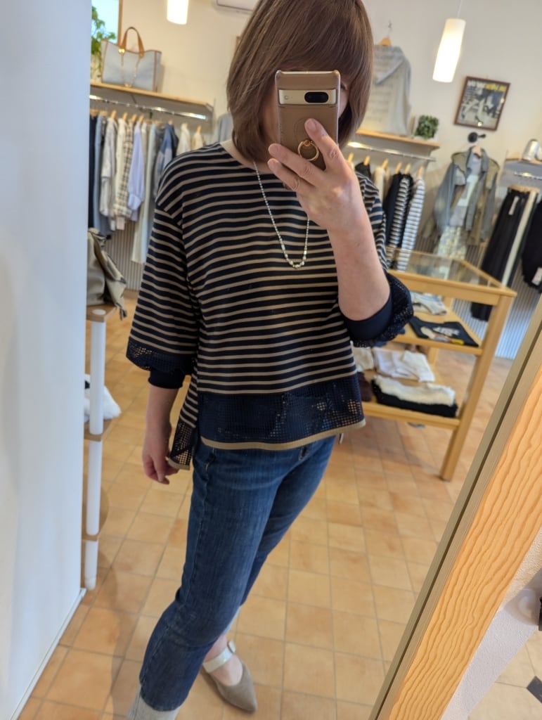 <BLUE FRONCE>ボーダー✕メッシュ切り替えプルオーバー